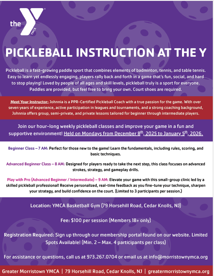 - Location: YMCA Basketball Gym (79 Horsehill Road, Cedar Knolls, NJ)