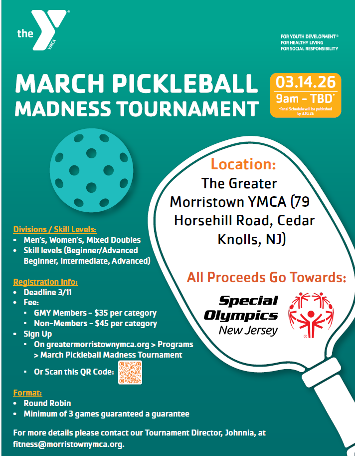 Tournament to be held Saturday, March 14, 2026 starting at 9:00am indoors at the GMYMCA.